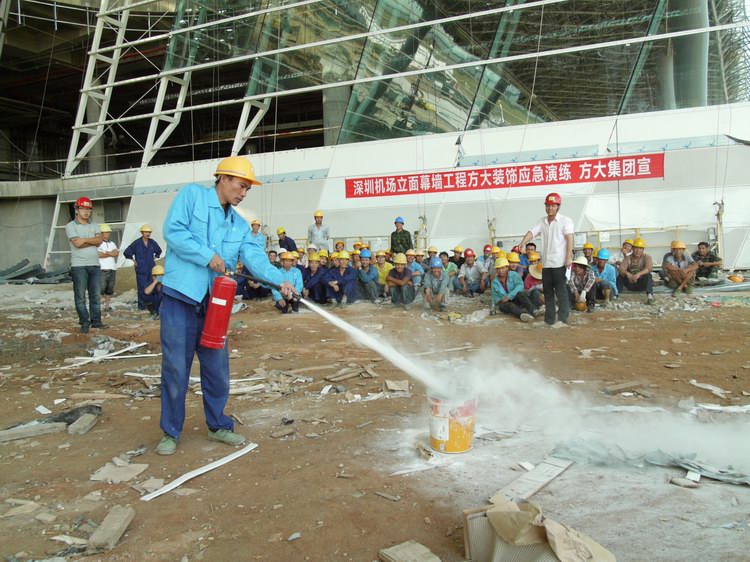 7月3日下午,為了檢驗(yàn)今年全國“安全生產(chǎn)月”的成果和深圳機(jī)場(chǎng)T3航站樓幕墻工程項(xiàng)目的安全生產(chǎn)應(yīng)急能力,方大集團(tuán)、深圳市方大裝飾工程有限公司組織開展了為期半天的幕墻施工防火、防高墜、防坍塌安全事故應(yīng)急演練。集團(tuán)公司安全主管尚清波、裝飾公司安全部經(jīng)理丁志剛、T3航站樓項(xiàng)目部副經(jīng)理高晶參與現(xiàn)場(chǎng)演練組織指揮。這次安全應(yīng)急演練,檢驗(yàn)了現(xiàn)場(chǎng)管理和施工人員面對(duì)緊急情況的應(yīng)急處置能力和水平,提高了大家的安全應(yīng)急意識(shí)和水準(zhǔn),整個(gè)演練過程銜接到位,收到了良好的預(yù)期效果。