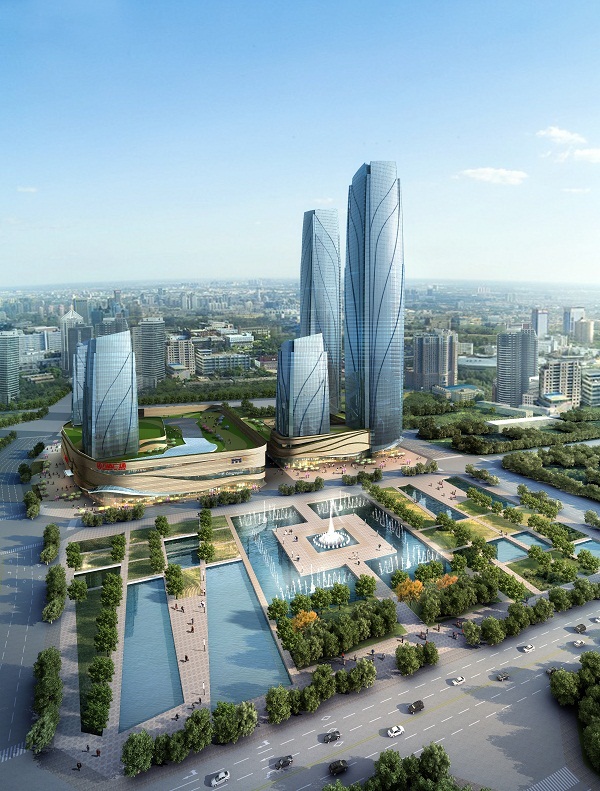昆明西山萬達(dá)廣場是萬達(dá)集團(tuán)打造的商業(yè)綜合體項目,享有全國萬達(dá)商業(yè)最高等級,兩棟高316米的甲級寫字樓是昆明第一高雙塔,也是迄今萬達(dá)歷史上的第一高樓,同時也是萬達(dá)集團(tuán)第100個萬達(dá)廣場項目,其所處區(qū)域正好是昆明泛亞金融產(chǎn)業(yè)中心園區(qū)核心位置。外形設(shè)計構(gòu)思是從昆明市市花-山茶花演化而來,從高空向下俯瞰是一朵含苞待放的山茶花,立面為向上盛開的花瓣形狀。項目主要采用單元式玻璃幕墻、玻璃肋點支撐幕墻、石材幕墻、框架式玻璃幕墻等系統(tǒng)。