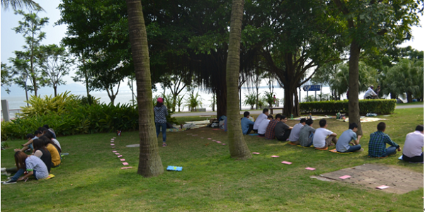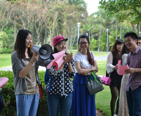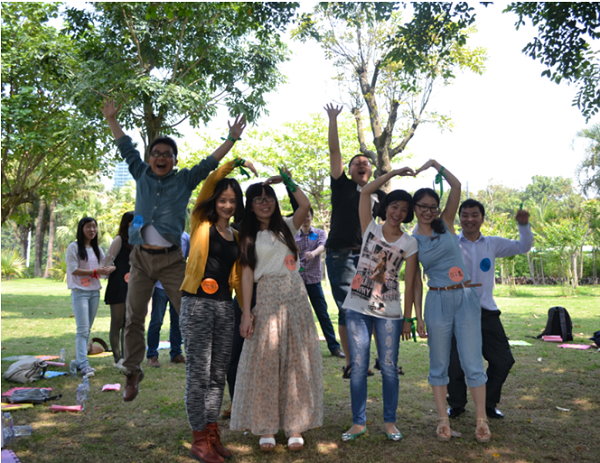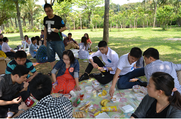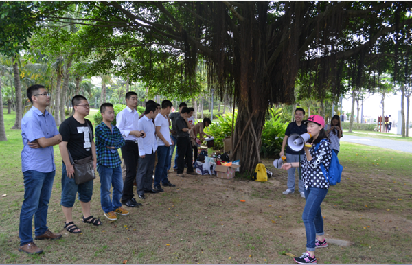 活動當(dāng)天,大家意興盎然來到了深圳灣公園,通過簡單的自我介紹,在5分鐘時間內(nèi)迅速找到自己的搭檔,然后進行互相介紹,之后每個人拿出自己精心準(zhǔn)備的食物跟大家進行分享。分享過后大家迫不及待地投入到“報紙大聯(lián)盟”、“五毛一塊”、“幸福彼岸”、“群魔亂舞”“電動馬達臀”等游戲中。大家用歌聲、舞蹈和游戲傳遞著快樂與情誼,進一步拉近著彼此間的距離。一個個激動人心的互動小游戲?qū)⒙?lián)誼會推向高潮,一個個刁鉆的懲罰方式更令人捧腹。在“報紙大聯(lián)盟”、“幸福彼岸”的游戲環(huán)節(jié)中,大家踴躍參加,使出渾身解數(shù),各顯智慧,用默契的配合共同爭創(chuàng)佳績。游戲之后,大家進入到了最神秘的“背對背的秘密”環(huán)節(jié),男女生各站一排,相背而坐,大家依次將自己的心意卡放進了心儀異性的信封中。最后,大家兩兩相約,共同踏上單車盡享初夏深圳灣的風(fēng)景。整個活動中,大家熱情交談,彼此了解興趣愛好,互留聯(lián)絡(luò)方式,活動之后還制作了聯(lián)誼會通訊錄,以便今后更好地繼續(xù)交流互動。