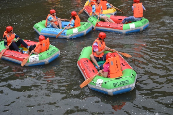 整個(gè)活動(dòng),27個(gè)人的團(tuán)隊(duì)始終被舒適、放松、和諧的氛圍縈繞著。第一個(gè)活動(dòng)目的地是著名的東林寺。東林寺建于東晉大元九年(384年),為廬山上歷史悠久的寺院之一。員工們?cè)谶@里參拜祈福,為家人朋友祈求平安。接下來的活動(dòng)是前往東林大峽谷,大家領(lǐng)略了佛、道、儒三家文化發(fā)祥地的特有魅力,游玩虎跑泉、虎溪橋、虎溪、洞天福地、匡續(xù)祠、桃花源、陶淵明讀書臺(tái)、冰川遺址——冰臼群、牯牛潭瀑布等景點(diǎn),品味蘇東坡“不識(shí)廬山真面目 只緣身在此山中”的夢(mèng)幻峽谷。然后再前往東林大峽谷漂流,由于峽谷落差大,九曲十八彎,波急浪涌,一路穿峽谷,渡險(xiǎn)灘,過亂石,越急流,轉(zhuǎn)漩渦,皮筏沖在浪尖,兩邊峽谷幽深,綠樹成蔭,讓大家享受到了在峽谷沖浪的另類感受。最后一站是參觀世界最高阿彌陀佛銅像——48米高的東林大佛,一尊金燦燦的大佛屹立在高山之巔,東林大佛整體造型吸收了龍門石窟等盛唐佛像特點(diǎn),是中國(guó)唯一的露天阿彌陀佛銅像。