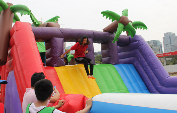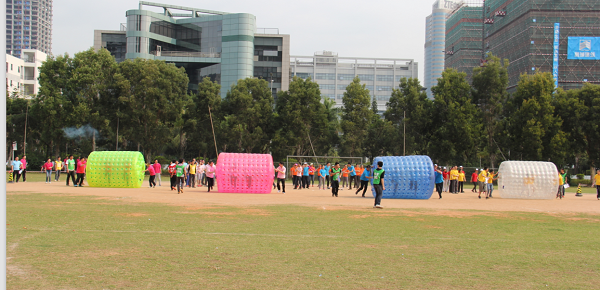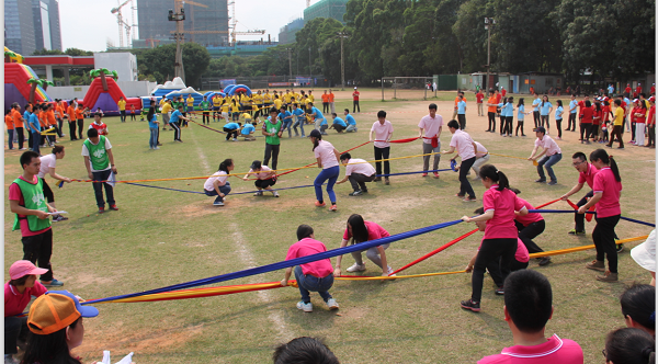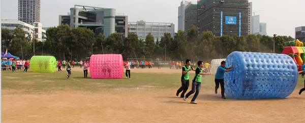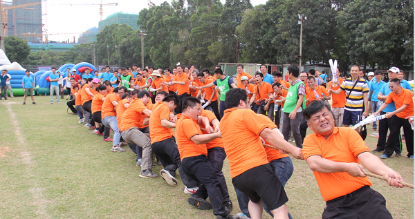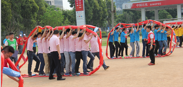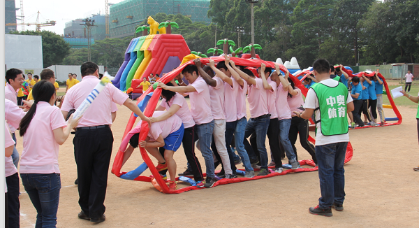 本次運動會共設置夢想起航、齊心協力、托起明天的太陽、編織夢想、智勇大沖關、拔河6個趣味項目。這些項目的突出特點就是強調團隊配合能力。其中“齊心協力”要求每隊20名隊員通過手腳協調配合撥動履帶向前進,非常講究技巧和團隊配合。整個比賽各代表隊參賽的隊員們各顯其能,將自己的運動熱情完全揮灑了出來,場面輕松快樂。最后,自動化公司、深圳分公司、廈門分公司分獲團體冠軍、亞軍、季軍。