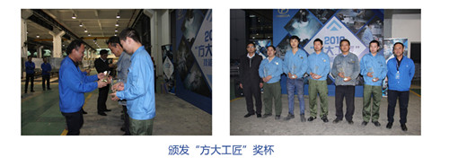在評(píng)委們嚴(yán)謹(jǐn)公正的考核下,隨著緊張而激烈的比賽的結(jié)束,各比賽工種的評(píng)比結(jié)果也陸續(xù)出爐。東莞公司的謝輝、蔣亞峰、黨要飛、謝昌元分別獲得下料、組框、打膠、電焊的第一名,江西新材的張文彪、李芳根分別獲得打磨、噴涂的第一名,自動(dòng)化公司的肖五生獲得組裝三項(xiàng)的第一名。在決賽總結(jié)大會(huì)上,這7位選手被授予2016年“方大工匠”稱(chēng)號(hào)。不僅如此,他們還將分別獲得1000元現(xiàn)金獎(jiǎng)勵(lì)、年底加薪及接受集團(tuán)公司專(zhuān)訪等福利待遇。