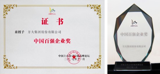 11月18日,第十七屆中國上市公司百強高峰論壇在北京舉行,同時公布了“2017年中國上市公司百強排行榜”,方大集團股份有限公司獲頒“中國百強企業(yè)獎”。