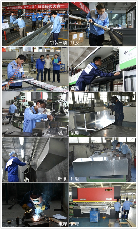 本屆“方大工匠”評選工種為電焊、組裝、打膠、銑工、噴漆、氬焊、折彎、打磨、組裝三項、維保。相較往屆,本屆評選還依據崗位的工作特性,優化了評選方式,設置了 “金牌項目經理”“金牌項目設計師”獎項對工程人員、設計人員進行獨立評選。