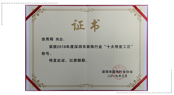328日,深圳市裝飾行業協會九屆三次會員大會暨2018年度總結表彰大會在深圳五洲賓館召開,大會對行業內表現突出的優秀個人等進行了表彰,方大集團股份有限公司全資子公司深圳市方大建科集團有限公司總經理魏越興榮獲2018年度深圳市裝飾行業“創新型人才”獎、區域經理張建輝榮獲2018年度深圳市裝飾行業“十大優秀項目經理”獎、高級設計師胡光洲榮獲2018年度深圳市裝飾行業“十大青年設計師”獎、幕墻制作工徐秀輝榮獲2018年度深圳市裝飾行業“十大明星工匠”獎。