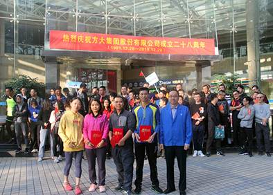 2019年12月28日,是方大集團股份有限公司成立二十八周年紀念日。為熱烈慶祝這一重要節日,公司舉辦了升旗儀式、“悅動方大”積分賽以及晨跑等系列活動,廣大員工踴躍參與。